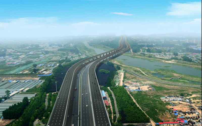 鄭州市四環(huán)線及大河路快速化工程為由大河路、東四環(huán)、南四環(huán)及西四環(huán)組成閉合環(huán)線,路線全長約93.030km。全線采用城市快速路路標(biāo)準(zhǔn),規(guī)劃控制總寬度180m(其中道路紅線寬80m,兩側(cè)各有50m寬綠化帶),西西四環(huán)、大河路(107輔道以西段)、南四環(huán)采用高架快速路形式,標(biāo)準(zhǔn)橫斷面組成為:高架快速路(雙向八車道)+地面主干路(雙向八車道)+輔路:大河路(107輔道以東段)、東四環(huán)采用地面快速路形式,標(biāo)準(zhǔn)橫斷面組成為:主線地面快速路(雙向十車道)+輔路。全線高架快速路長63.624km(新建56.536km,現(xiàn)狀7088km),地面快速路長29.406km;共設(shè)置27座互通立交,其中新建立交15座(改造現(xiàn)狀立交7座,利用現(xiàn)狀立交5座),37對上下匝道,8座隧道(下穿通道);全線與河(渠)交叉21處,與鐵路交叉12處(其中下穿高鐵8處,上跨普鐵4處),與軌道交通線交叉22處。