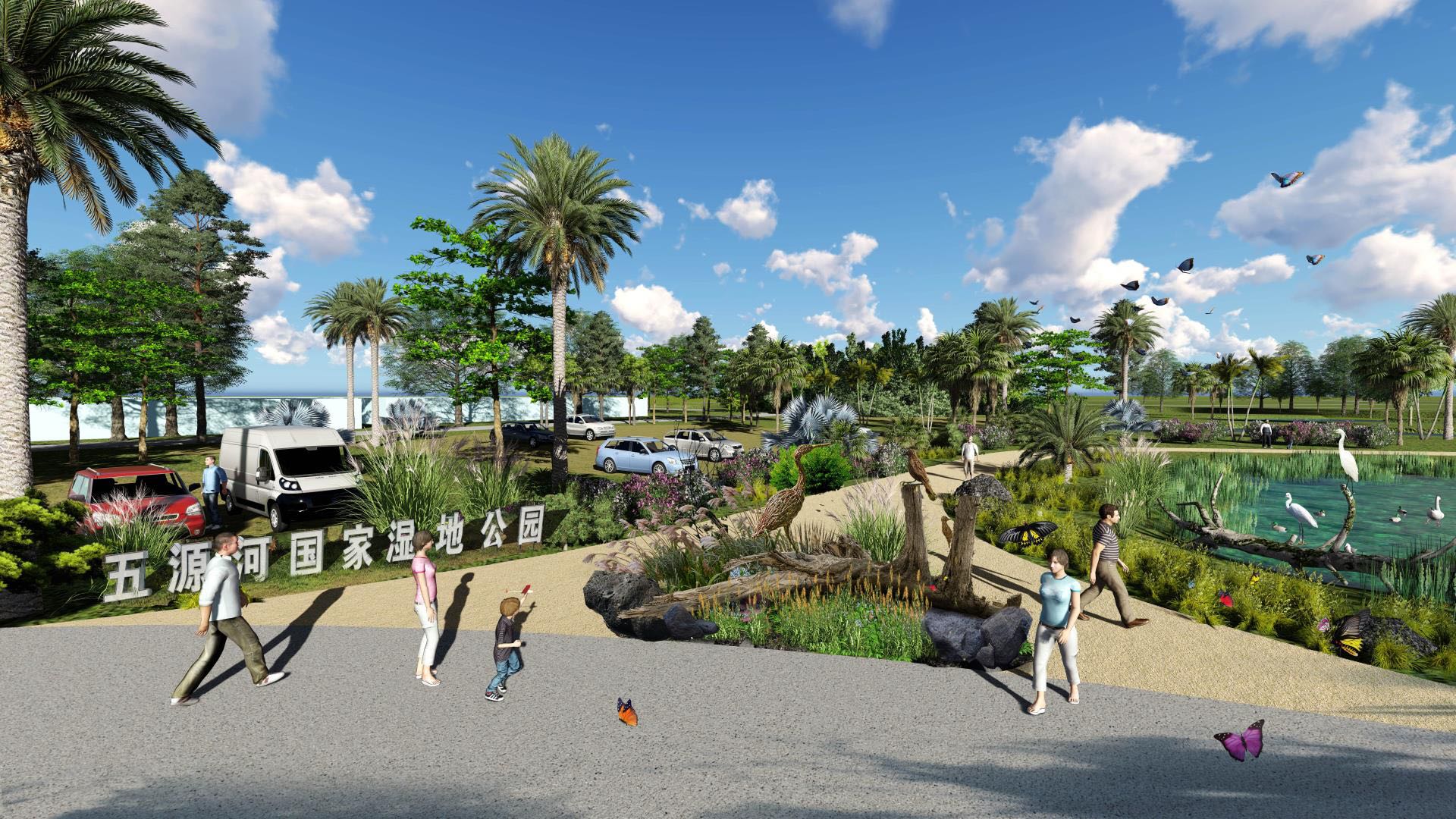 內容為項目總用地面積約492公頃,主要包括:1、保護工程包括土石方挖填25.7萬m3,駁岸22679㎡,水源涵養林10.05萬株,濕地凈化系統4.87萬㎡,補種本土植物(播撒草籽)、清除入侵植物(除草)124.74萬㎡;2、恢復工程(園林綠化)16.72萬㎡;3、交通工程包括道路6.96萬㎡,高空棧道、蛇橋各一座,親水平臺及木棧道、木廣場、生態停車場等0.76萬㎡;4、園林小品工程包括景觀塔、宣教長廊各1座,3座鐵塔,120個座椅;5、宣教工程包括2700㎡宣教館、65㎡科研監測站,2個衛生間及管理用房小計80㎡,微型濕地景觀廣場、蝶形生境及258個宣傳牌等;6、其他工程,水電、上游河道堤岸修復、科研監測等。