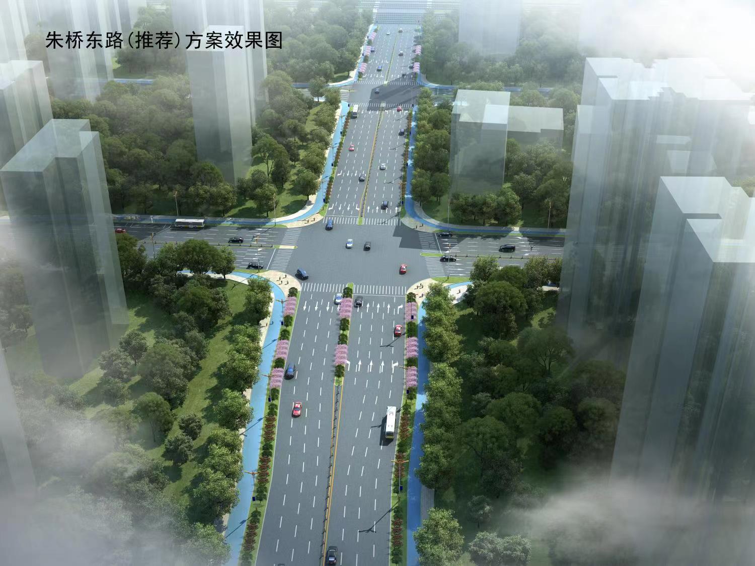 5)朱橋東路西起東站西路,東至站前三路,全長約166m,規(guī)劃為城市次干道,道路紅線寬為44m,雙向8車道,設(shè)計速度為50km/h。