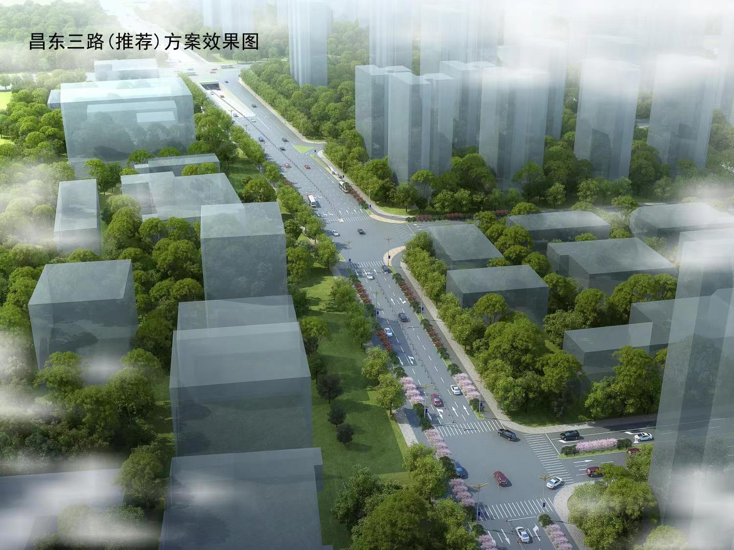 6)昌東三路西起胡板路,東至站前三路,全長812m,規(guī)劃為城市次干道,道路紅線寬為32m,雙向4車道,設(shè)計速度為40km/h。